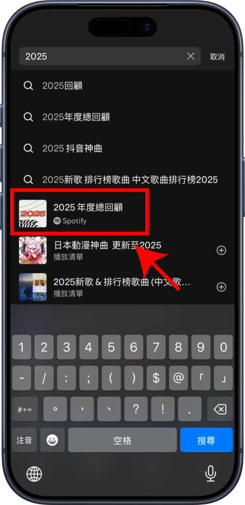 如果首頁沒顯示出「年度總回顧」,則可以改用「搜尋功能」來找尋,只要於搜尋欄位輸入「年度總回顧」,點選下方項目便可查看。