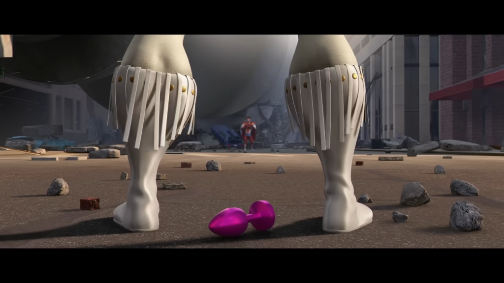 而進一步加深這形象的始作俑者,則可追溯於 YouTube 頻道 Reggles,該頻道主要上傳《麥克邁:超能壞蛋》的配音惡搞影片,其中 2025 年上傳的「Voicing Over The ENTIRE Megamind Movie [FINALE]」,在「城市超人」 (麥克邁假扮)與「泰特」的對決橋段,惡搞版刻意在城市超人的戰鬥熱身姿態,配合肌肉抖動添加「鋼塞掉落」畫面,這使得「城市超人」形象藉此與「基佬」掛勾,一去而不復返。