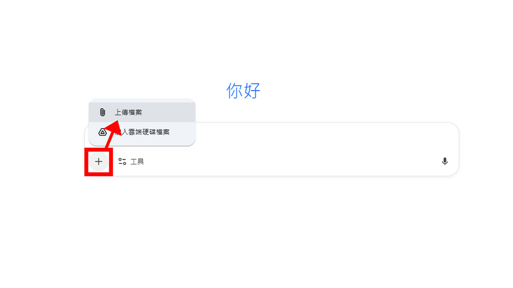 接下來上傳一張照片,點選對話框左側的「+」就可以上傳照片,無論是正臉自拍還是只有側臉的照片,只要照片足夠清晰、光線足夠,確保能讓 Gemini 可以辨別出頭髮部份的照片就可以了!