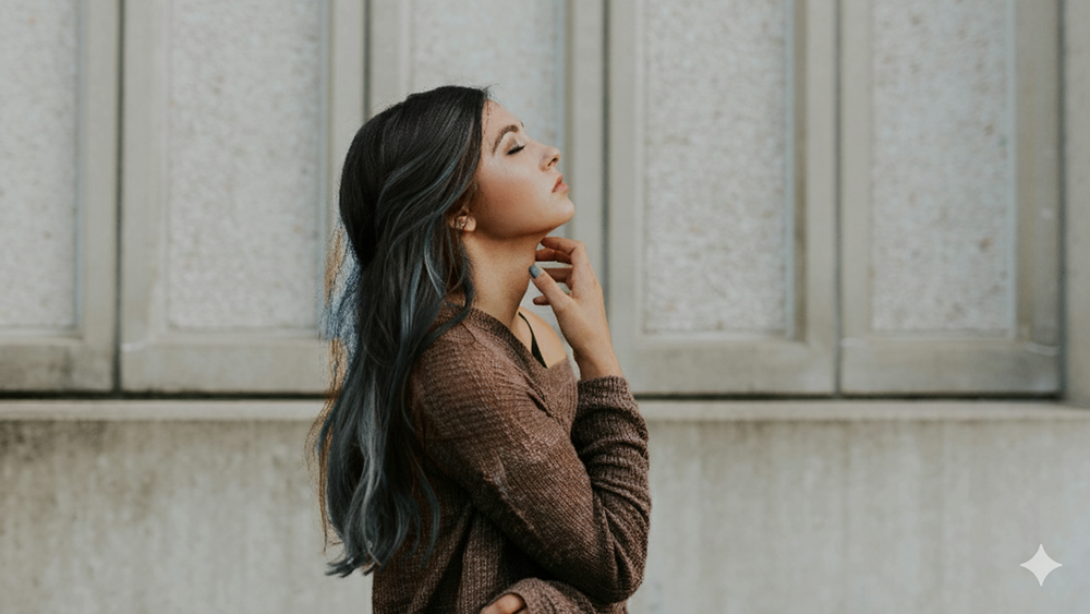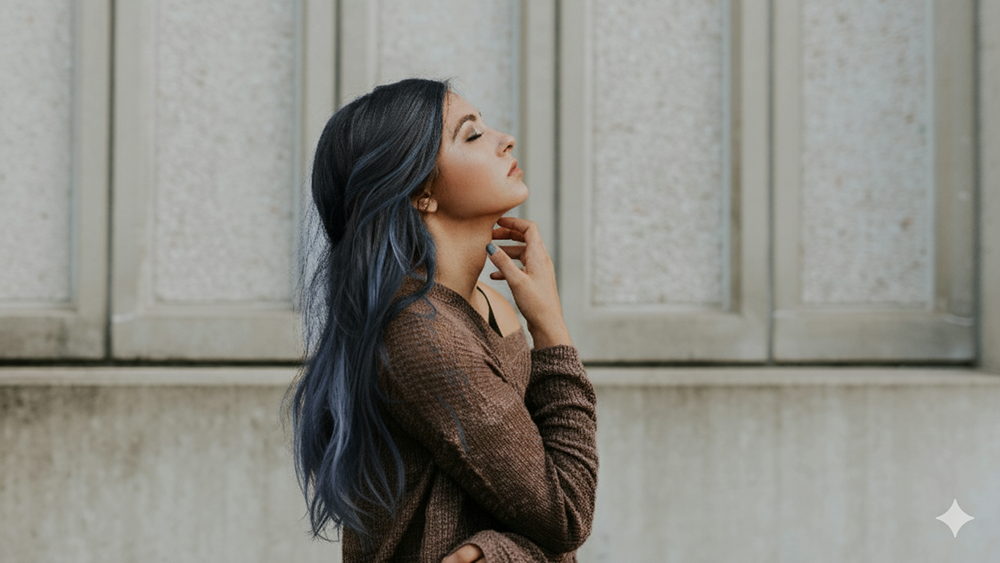 - 修改後指令:請幫我將這張圖片中的人物髮色改為#3C4959,包含人物後方較為凌亂的髮絲,只要是髮絲狀的頭髮顏色請都改為#3C4959,保留頭髮的線條感、光澤與質感,並且維持與膚色的協調性,其餘顏色與構圖必須與原圖相同。