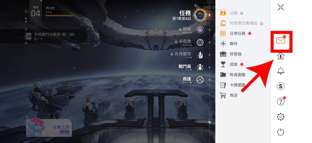 解鎖大廳功能後,可點選右上角選單後,從中找到「信箱」,進入可領取開服獎勵;另外,任務、成就等介面也可領取到些許抽卡資源。