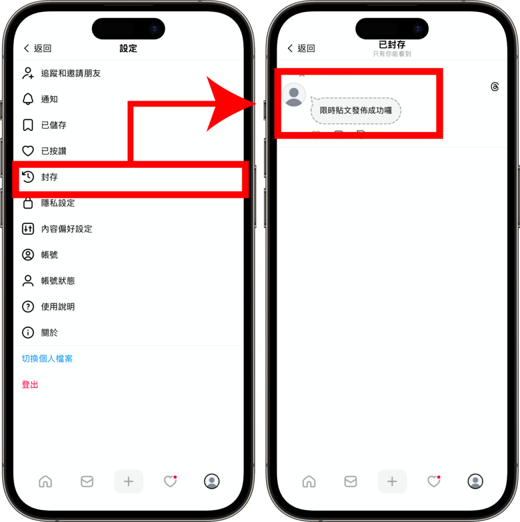 當限時貼文自動消失後,基本上都會被封存至「典藏」。若用戶有查看過往發文紀錄的需求,可透過「設定」中的「封存」進行查看。