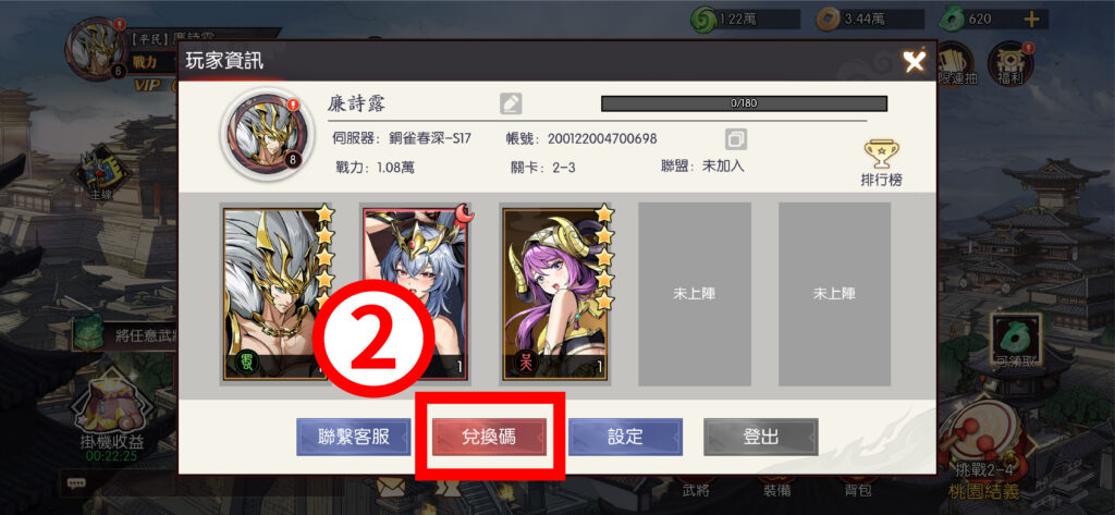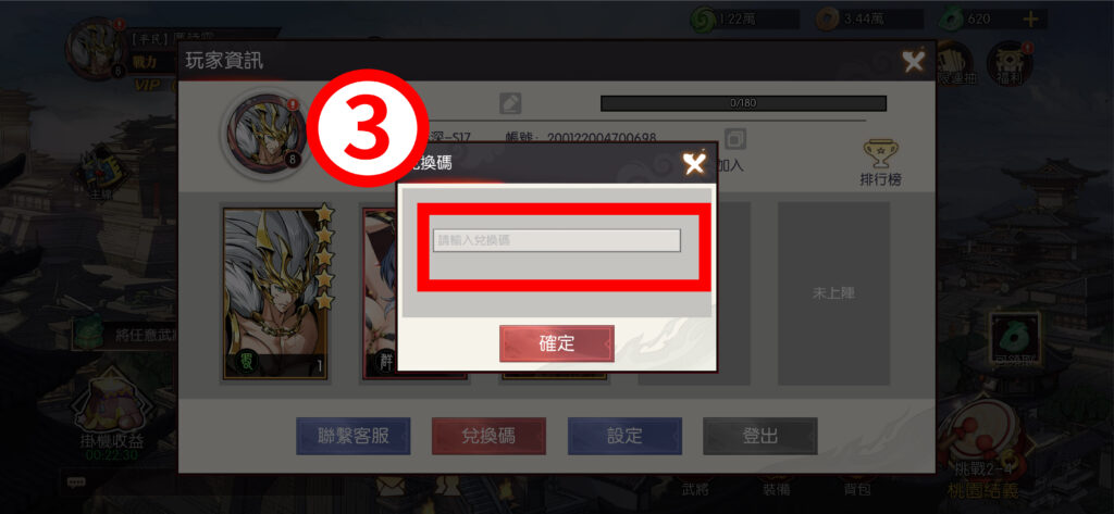 《胸懷三國》的兌換碼不分 iOS、Android 平台,皆可於遊戲內直接兌換,其領取方是為下: