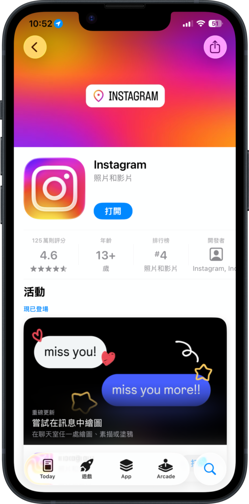首先大家要先打開應用程式商店來確定一下自己的 IG 是不是最新版本,如果還不是的話,要記得先將 IG 更新到最新版本。