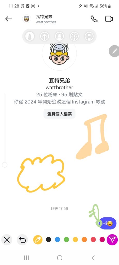 - 步驟(二)、進入 IG 聊天室,使用「塗鴉」功能