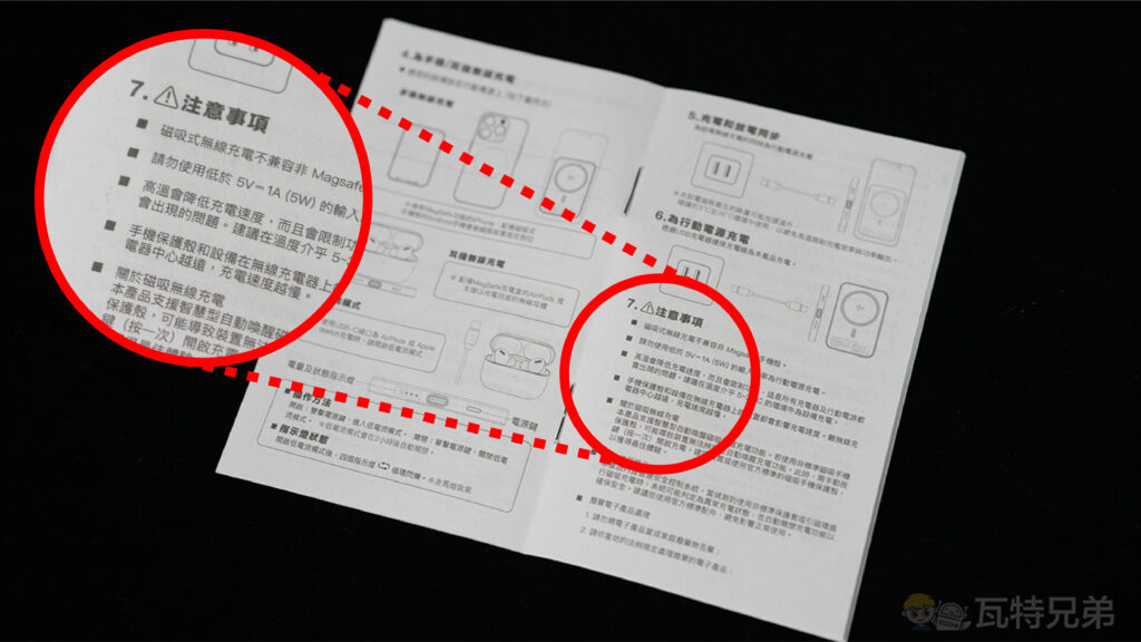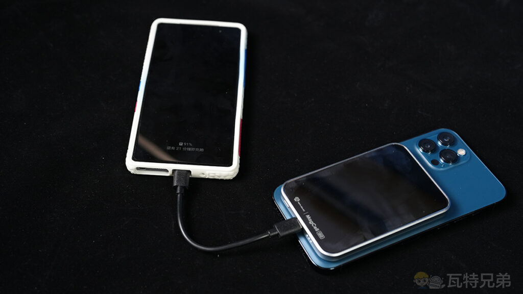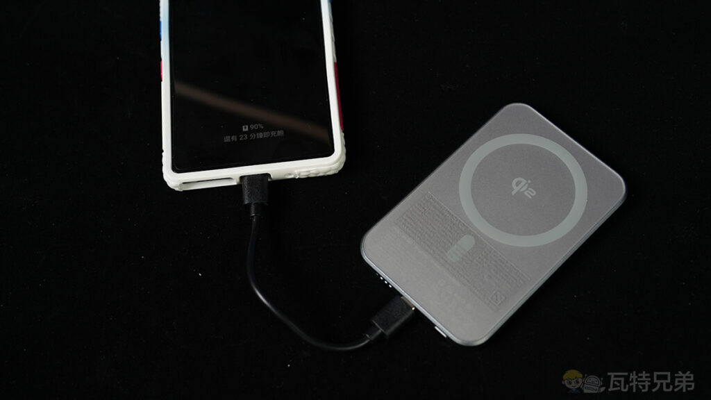 當「救世 Qi2 行動電源」一邊以有線方式充電,一邊以無線方式放電,依據官方規格,在裝置同步充放電的情況,有線輸入最高為 15W、無線輸出則會降至 5W。