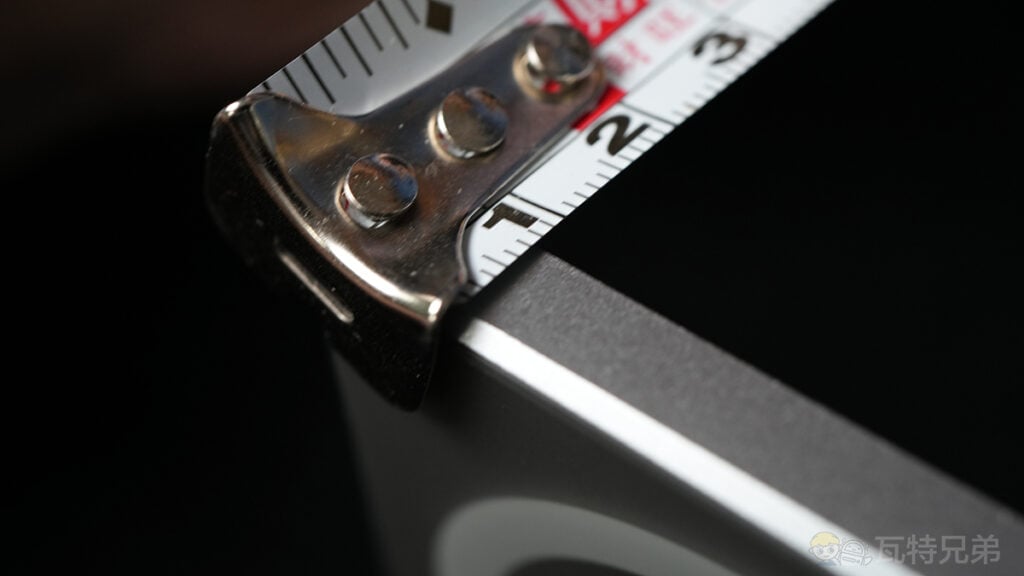而經瓦特實際測量,其尺寸大小為 106 x 69 x 8 mm,其厚度與 iPhone 接近,只比 iPhone 12 Pro Max(厚度 7.4mm)多一點點;而在重量方面,瓦特則測得 131g,與規格顯示的 129g 相近,手握體感比手機更輕。