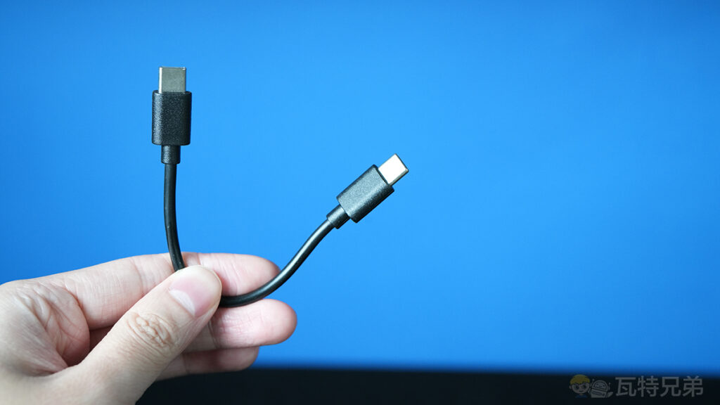 內容物方面,扣除行動電源本體外,還有「充電線」、「收納袋」、「說明書」 3 項配件,其中充電線兩端皆為 Type-C 連接埠,使用上也要自備符合充電要求的充電器,才可符合最佳充電效益。