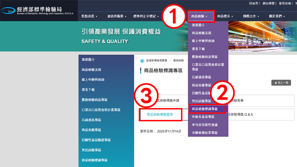 ▼ 進入標檢局查詢頁面步驟