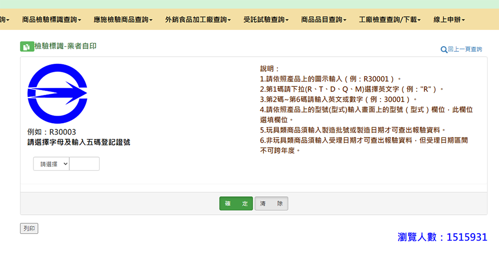▼標檢局業者自行印製標識查詢頁面