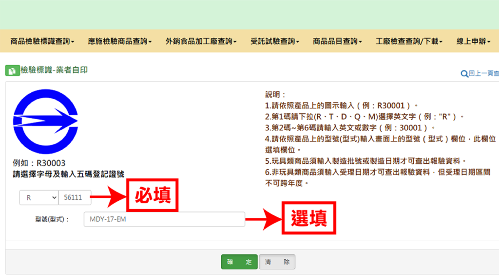 - 標檢局連結:業者自印標識查詢頁面