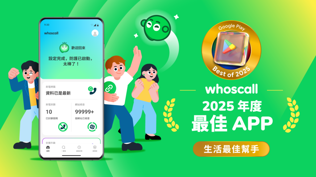 Google 今(19)公告 2025 Google Play 台灣年度最佳榜單,信任科技服務商 Gogolook(股票代號:6902) 旗下數位防詐 App Whoscall 榮獲 「2025 Google Play 台灣年度最佳生活幫手應用程式」(Best Everyday Essential),