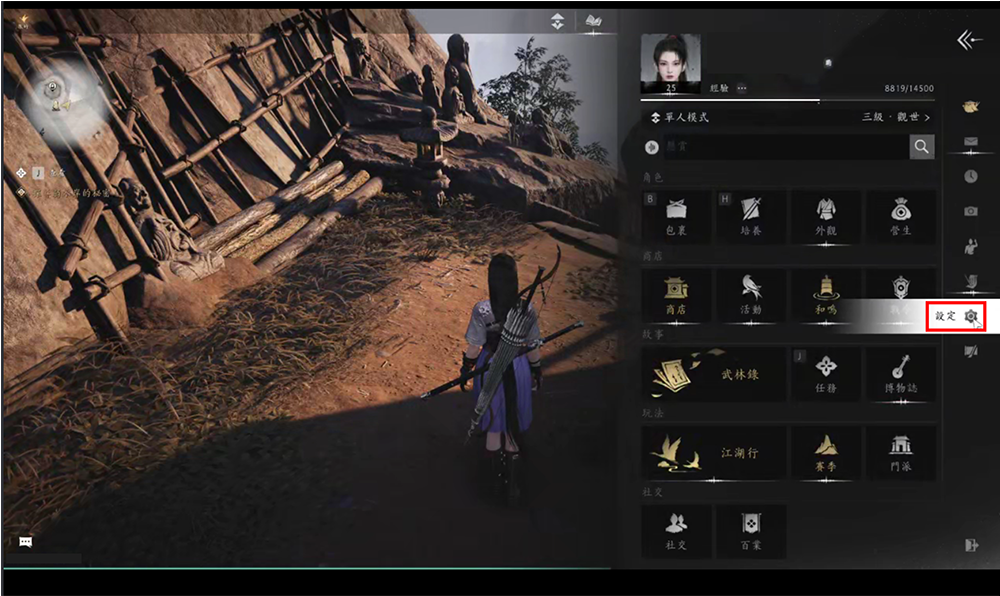 在遊戲內透過「ESC 鍵」進入到選單畫面,或是點擊右上角的「選單」,接下來選擇右側功能欄位當中的「設定」,進入到設定介面中。