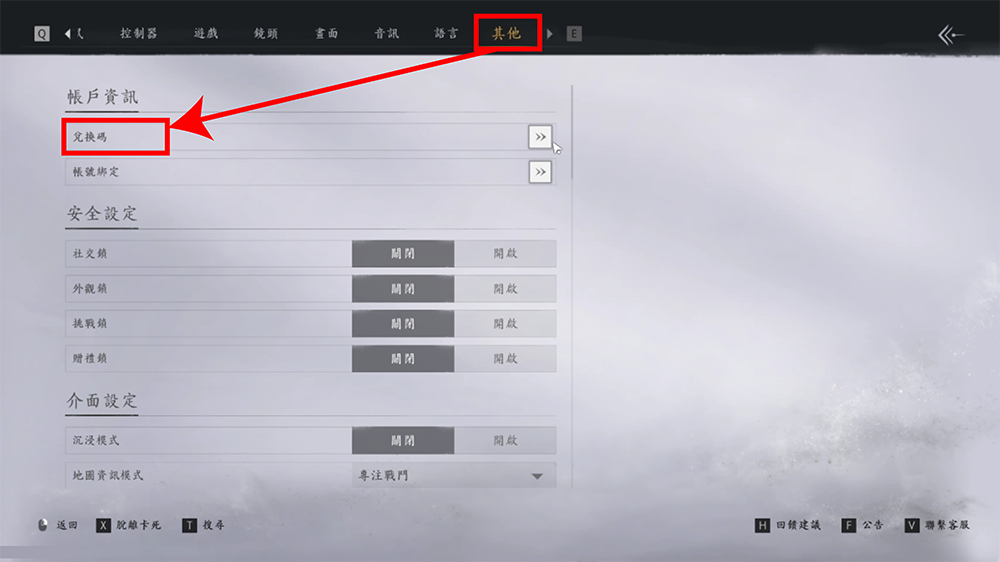 ▼ 選擇「其他」功能就可以看到兌換碼輸入位置