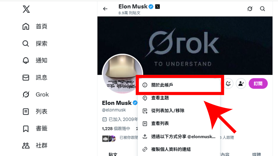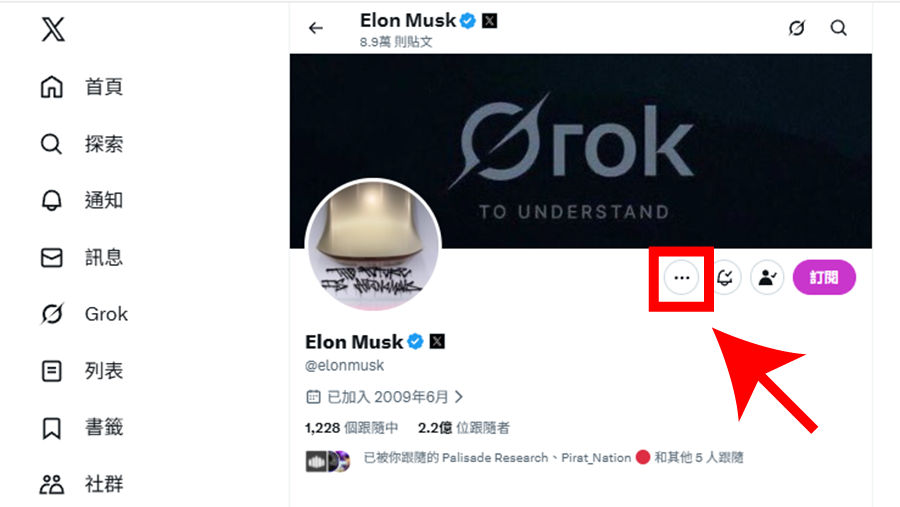 - 步驟(1)、進入想要查詢的 X 帳號「個人主頁」,打開右上角的「…」。