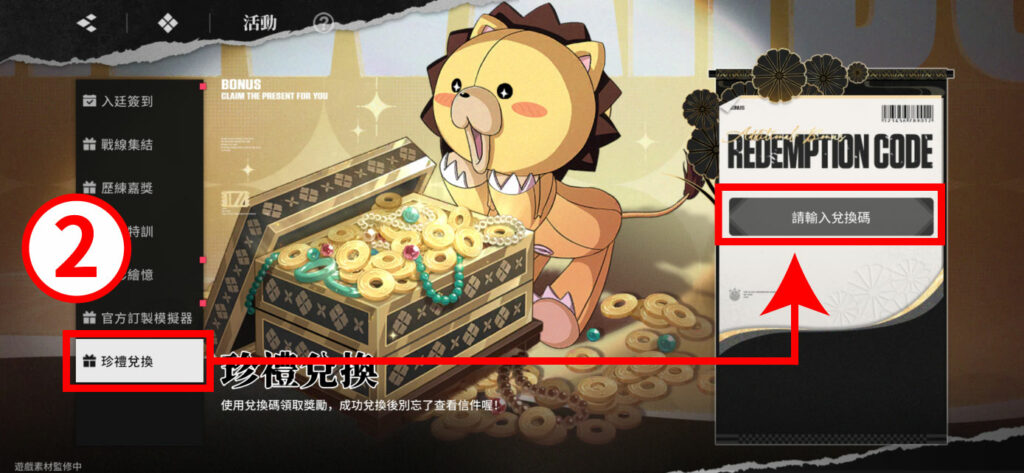 - 步驟(2)、點選右側最下方的「珍禮兌換」,即可輸入「兌換碼」。
