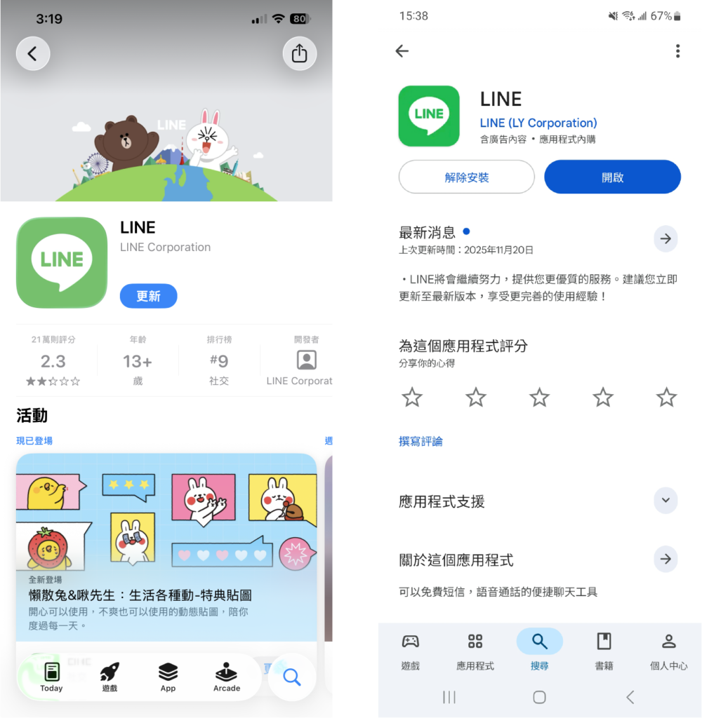 - 步驟(1)、更新 LINE App