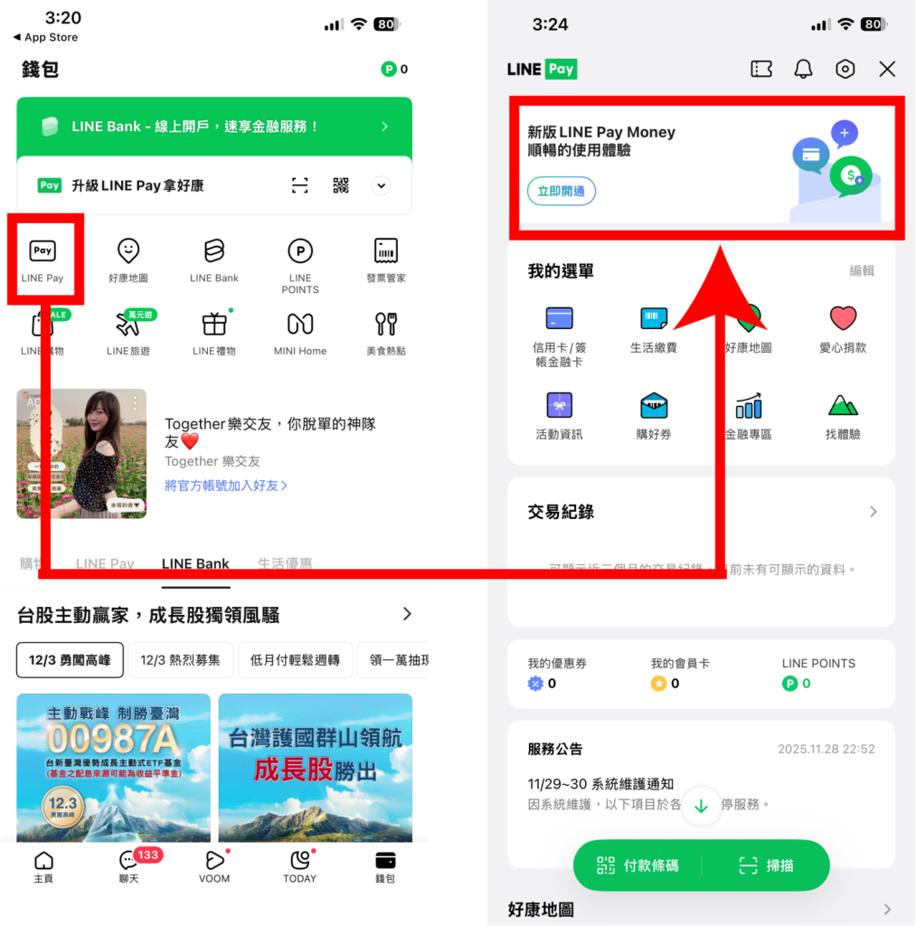 LINE Pay Money 怎麼開通?