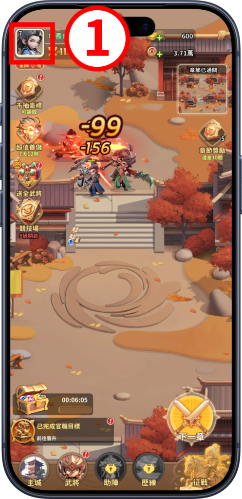 - 步驟(1)、進入遊戲畫面,點選左上角「人物頭像」。