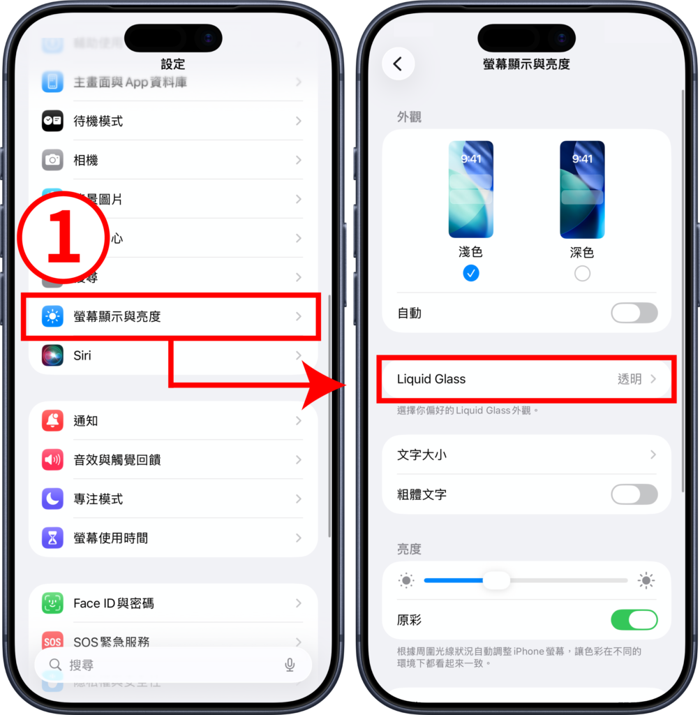 若 iOS 用戶不喜歡「液態玻璃」效果,希望改回比較貼近舊版的介面,可從「設定」中的「螢幕顯示與亮度」來切換,操作方法為下: