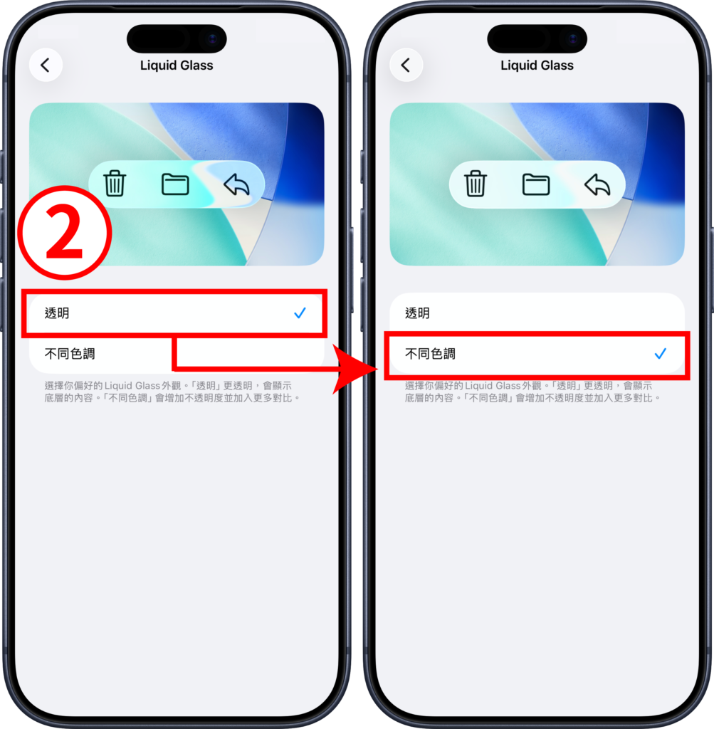 iPhone 液態玻璃的「透明度」怎麼調整?