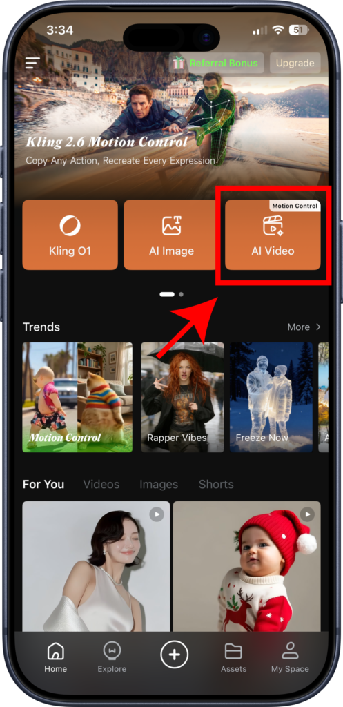「可靈 AI」又稱 Kling AI,該 AI 工具支援 iOS、Android 等手機平台,用戶可從 App Store 與 Google Play 商店進行下載,後續以手機進行製作,直接套用 AI 效果於小寶寶照片中,詳細操作為下: