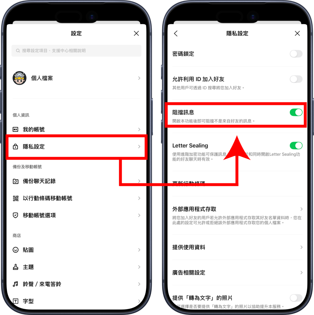 ▉ 方法(2)、開啟「阻擋訊息」功能