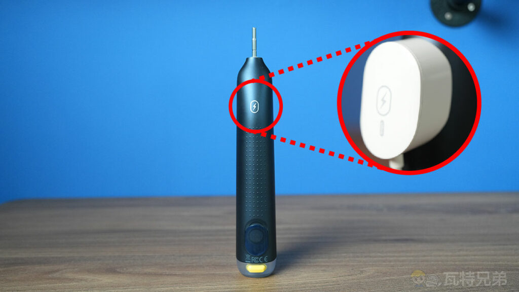 - 相比其他電動牙刷,「Soocas NEOS II Ultra」充電設計也很特別,不僅採用了磁吸式充電,其位置則位於本機正後方,以「閃電」符合來標示,只要將專屬充電器吸附上去,再插上電源即可充電。