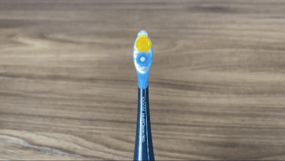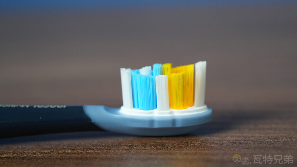 - 首先是「藍色刷頭」,功能上主打「專業清潔」,其刷頭設計為 3D 弧面,不僅更能貼合牙齒弧度,長短兩種不同刷毛也各有用途,長刷毛可深入齒縫與牙齦線、短刷毛則可拋光齒面,再搭配超高磨圓率刷絲與出水口沖洗,能進一步清潔同時降低刺激風險。