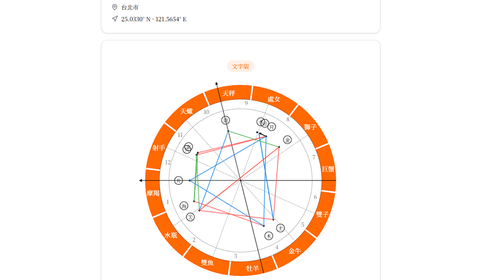 ▼ 先將自己的命盤或是星盤在專門的網站當中排出來