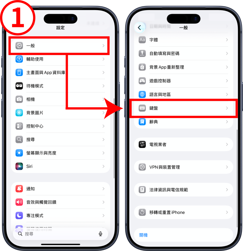 - 步驟(1)、打開設定中的「一般」,再點選「鍵盤」。