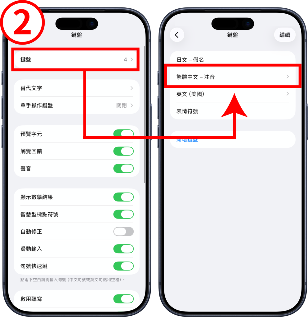 iPhone 動態鍵盤可透過「鍵盤設定」來進行更換,其操作方式為下: