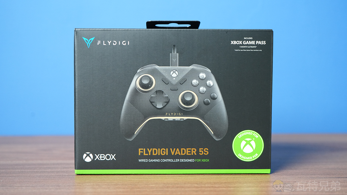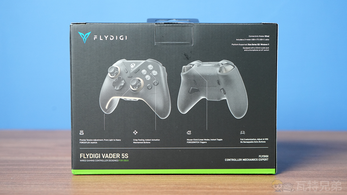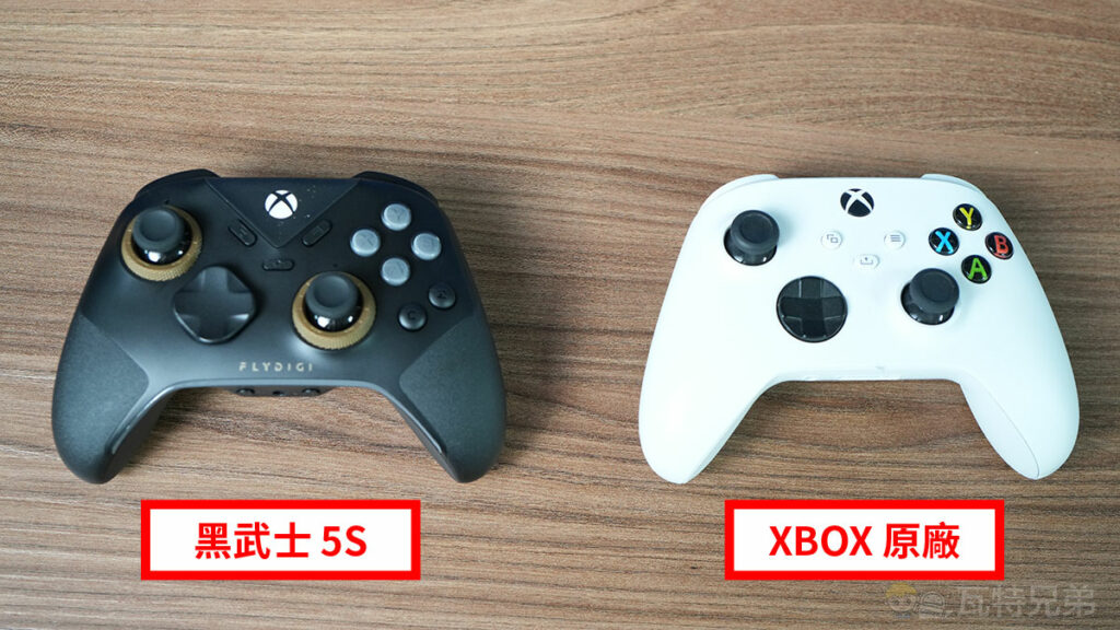 另外,「黑武士 5S」也是首款經 Xbox 官方授權的飛智手把,其中央 logo 也從「飛智」更換為「Xbox」,僅於下方補充暗金色的 FLYDIGI 字樣。