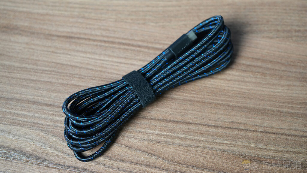 除此之外,該數據線的長度接近 3m,不僅可應對大多數的 PC 或主機使用情境,廠商還很貼心的附加「魔鬼氈集線束帶」,可將多餘的長度收綁在一起,避免線材因過長導致桌面混亂。
