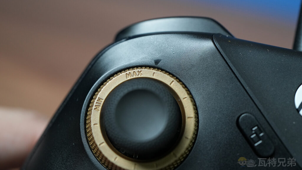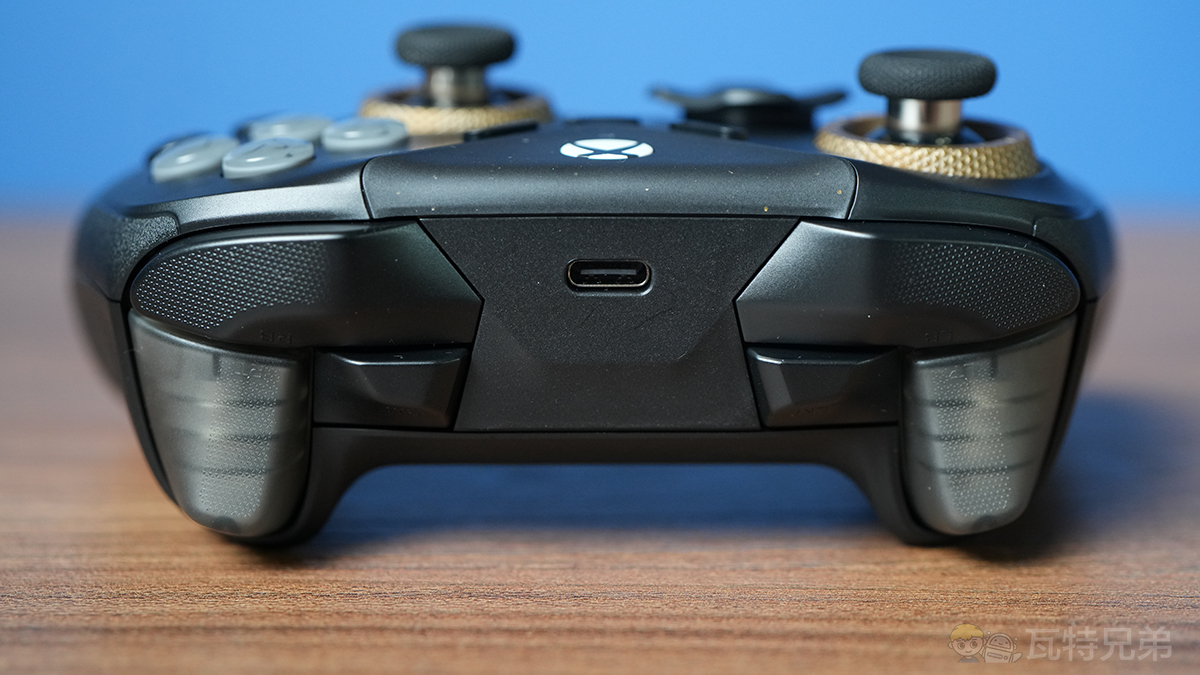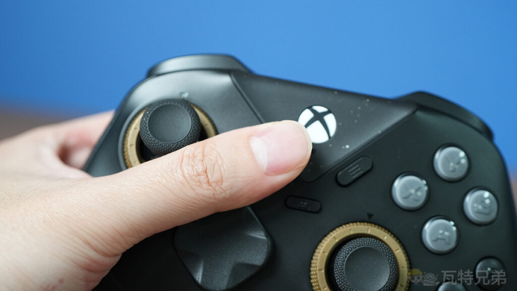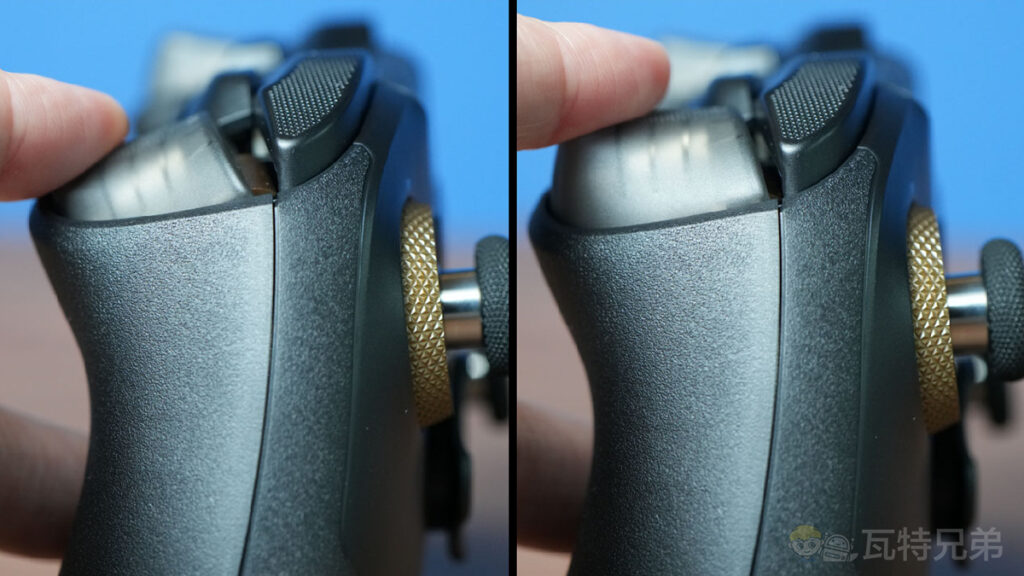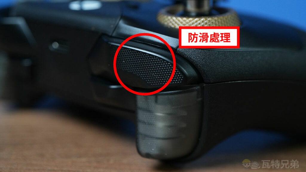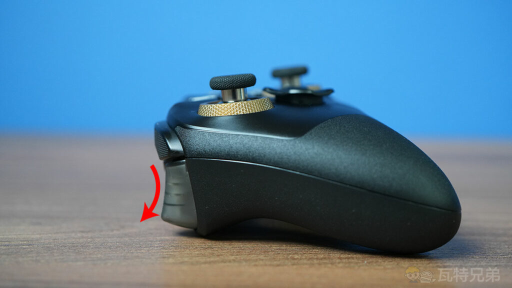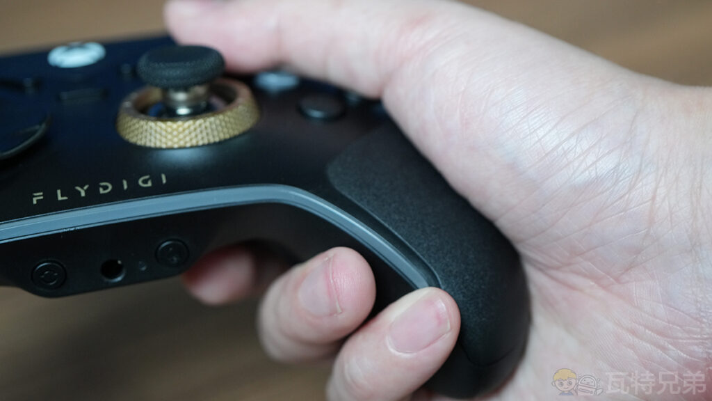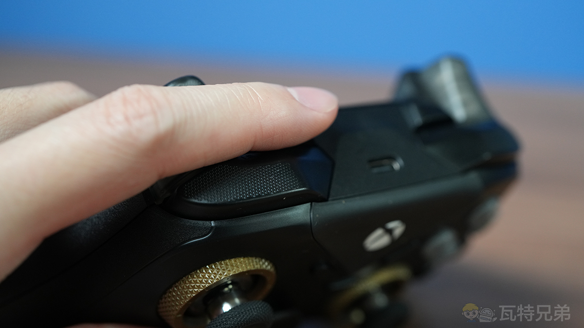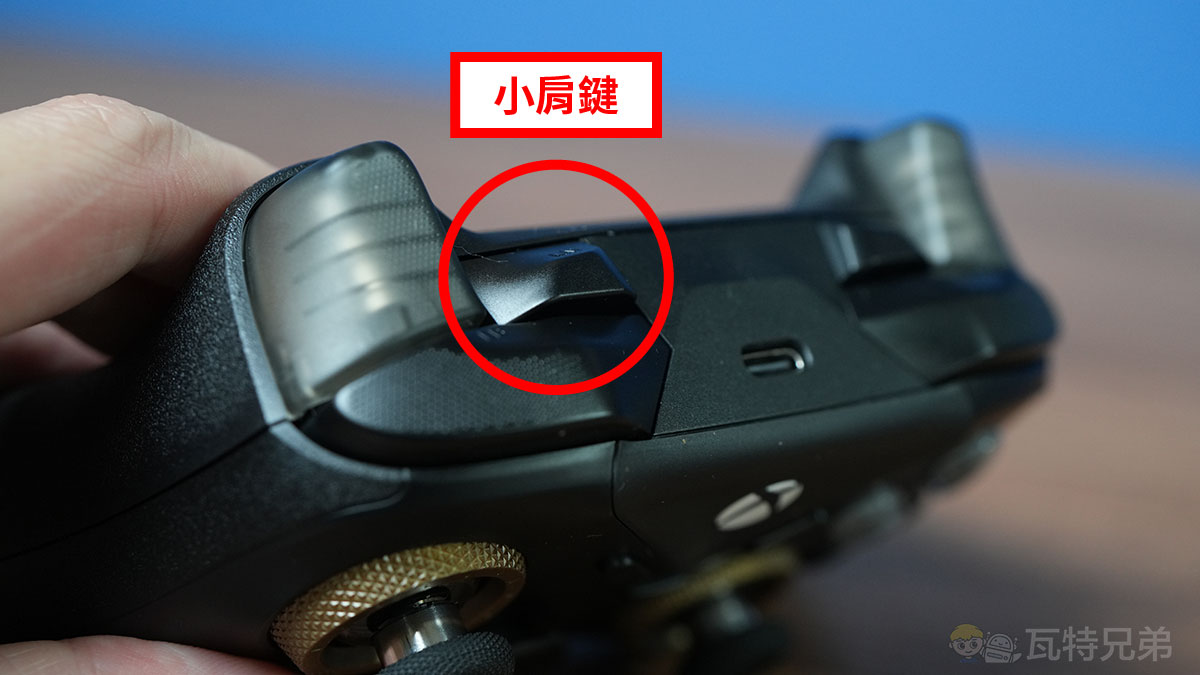 至於「小肩鍵」的部分,其位置設計得宜,瓦特食指可以輕鬆平放於小肩鍵上進行按壓,再加上鍵程高度大於 RT、LT 兩鍵,使其點按上也不易發生手指誤觸的情況。