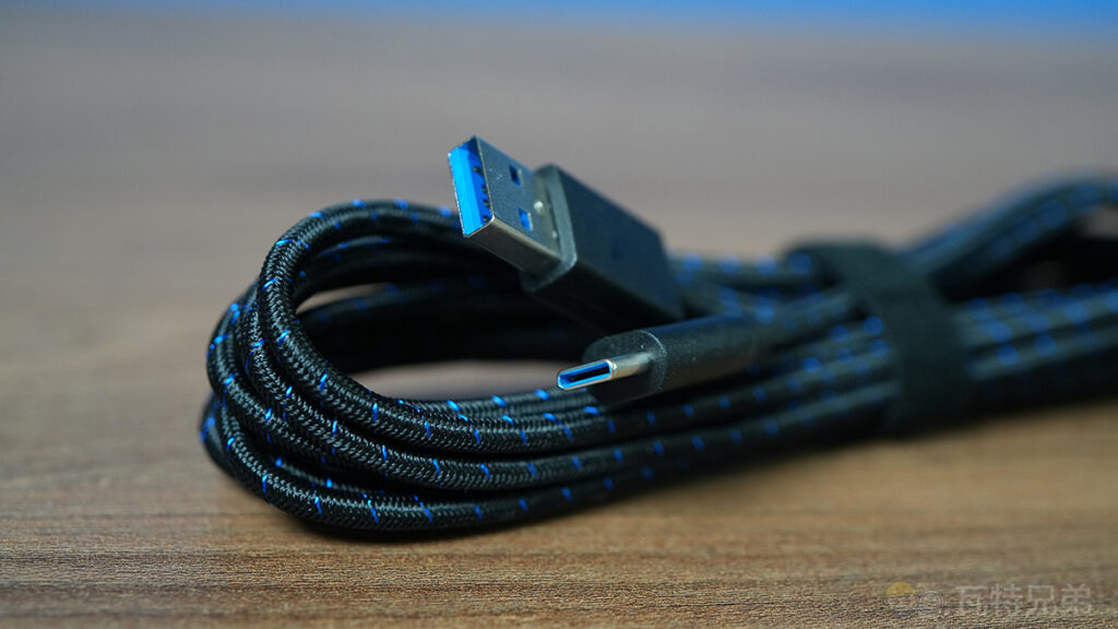 由於「黑武士 5S 」強調有線體驗,其附贈的「數據線」可說是一點也不馬虎,其品質遠高於市面大多數手把附贈的塑膠數據線,採用了更加耐用、觸感更佳的「尼龍編織」,能有效抵抗拉扯,防止內部線芯斷裂。